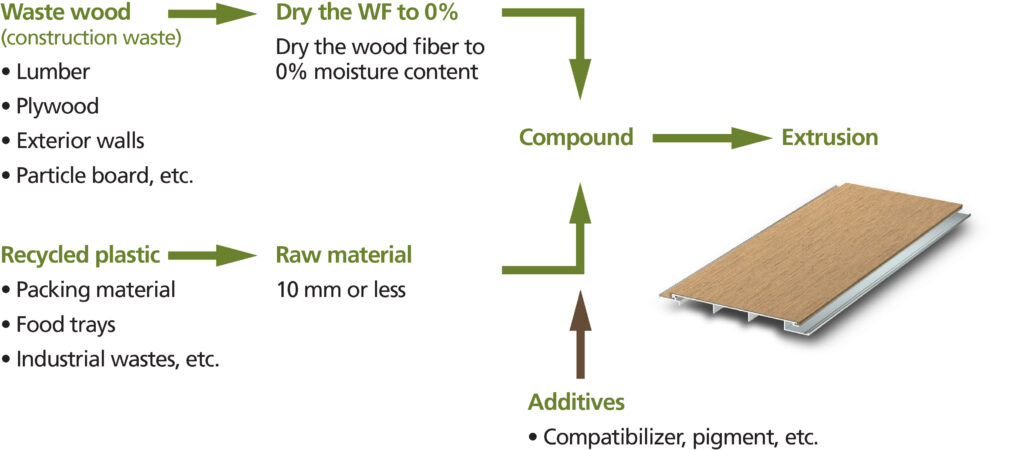 Traditional wood-plastic composites (WPCs) struggle with moisture. Even trace amounts prevent wood fibers and plastics from adhering, resulting in weak, unstable products. Geolam® eliminates this issue by reducing wood fiber moisture content to 0%, creating a fully integrated material that’s stronger, more stable, and more natural in appearance than standard WPCs.