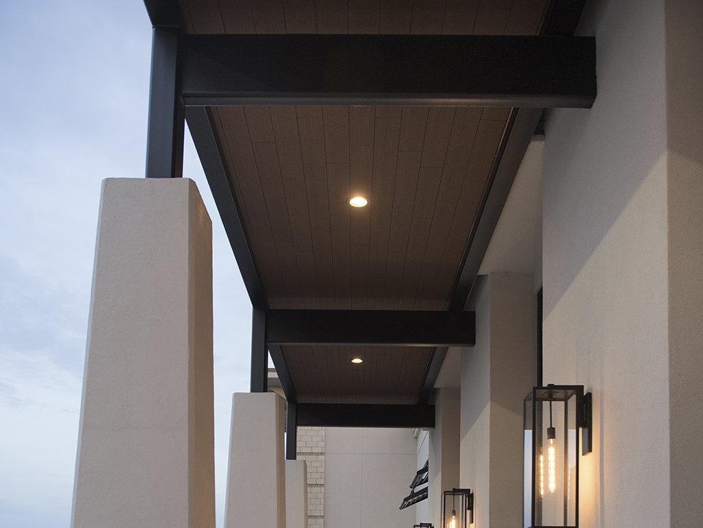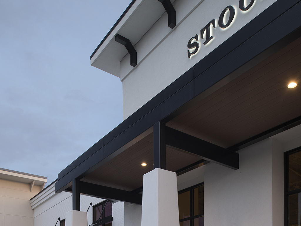 Stock & Trade’s new location, once occupied by a grocer, needed a transformation to fit the store’s upscale brand. For new façade, we needed to find a quality product for the soffits that complimented the upscale façade. Geolam’s Vertigo 5010 was chosen.